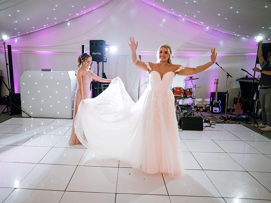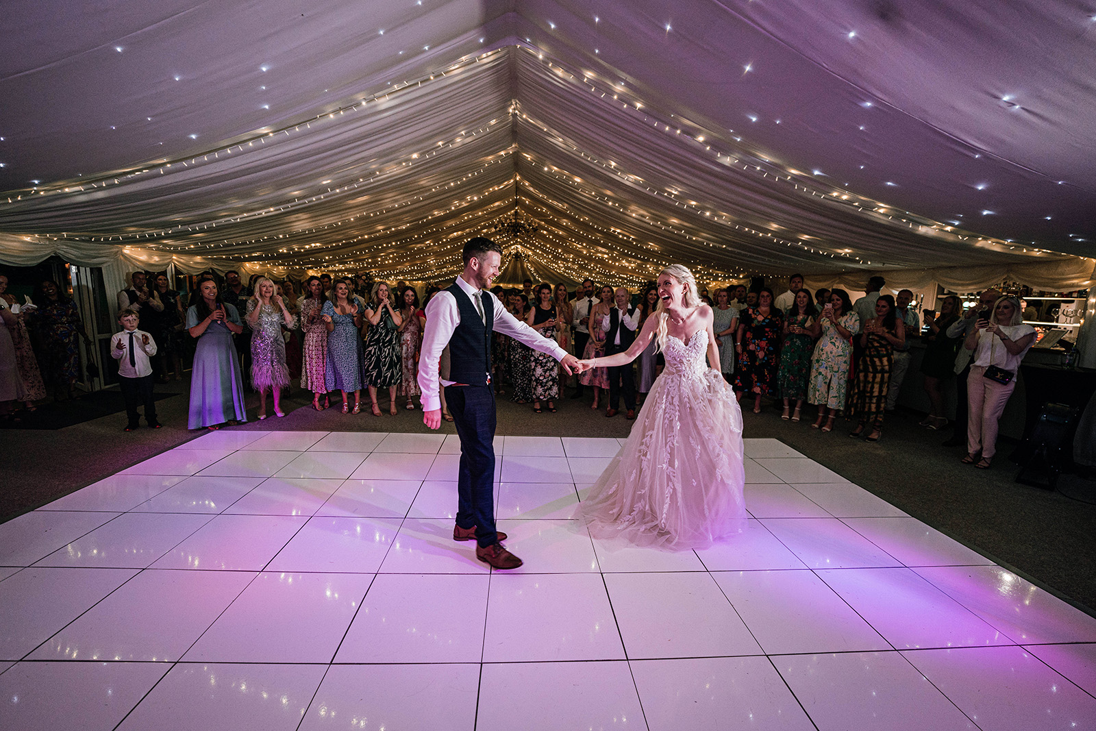 The Arboretum Pavilion marquee can accommodate up to 150 guests for the wedding breakfast, and up to 200 guests for the evening celebration.